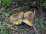 Po udanym poniedziałkowym grzybobraniu i znalezieniu pierwszych koźlarzy, podgrzybków wybrałem się na kolejne grzybobranie z głównym celem znalezienia pierwszego borowika. Ostatnio gdy byłem w tym lesie 6 lipca znalazłem jedynie jednego muchomora czerwieniejącego i dwie kurki... W drodze do miejscówki borowikowej spotkałem pierwsze grzyby. Gdy dotarłem już na miejscówkę ujrzałem ślady pozyskania przez kogoś borowika o nawet sporych rozmiarach, kilka metrów kolejne ślady... Z jednej strony mnie to ucieszyło, bo oznaczało to, że już są borowiki ale z drugiej trochę wkurzyło, że ktoś mnie ubiegł :x Na szczęście pozyskane już przez kogoś borowiki nie były jedynymi, po dłuższej chwili znalazłem swoje pierwsze borowiki w tym roku Borowiki trochę nadjedzone przez ślimaki ale zdrowe... Oprócz borowików trafiło się kilka wynalazków i trochę kurek. Pod koniec wpadły jeszcze dwa borowiki. Pierwszy niestety starszawy i robaczywy... Natomiast drugi już naprawdę :ok: Borowiki trafiły do słoiczka, a z kurek była pyszna jajecznica :eat: Podsumowując, grzybobranie bardzo udane. Nie ma to jak znaleźć pierwszego borowika